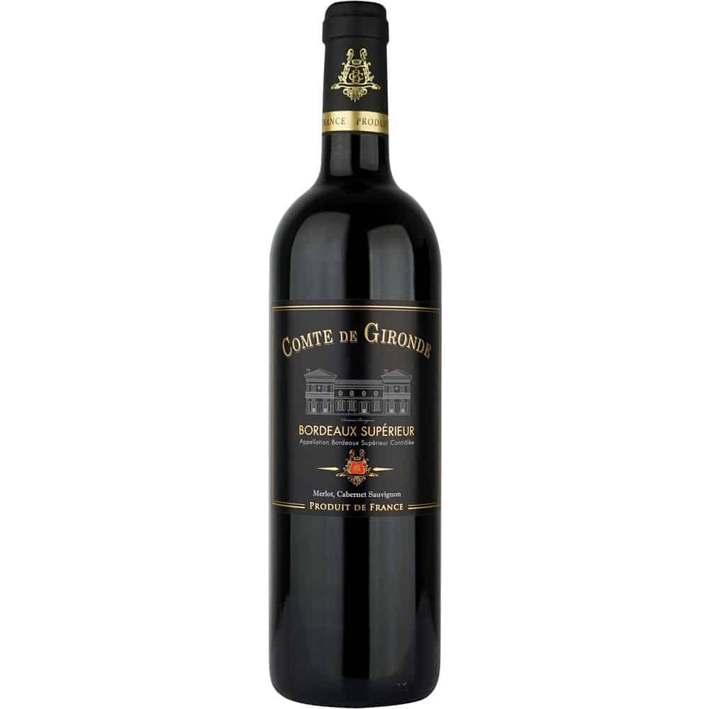 Comte de Gironde Bordeaux Suprieur AOC is a classic red wine from the Bordeaux region known for its rich blend and superior quality.