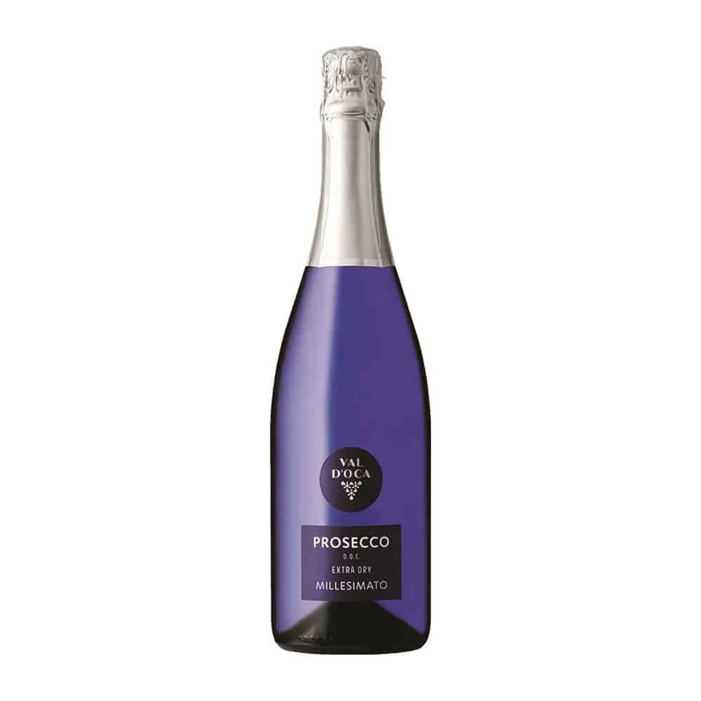 The Val D’Oca Proséecco “Blu” Millesimato Extra Dry DOC 2022 is a vibrant and elegant sparkling wine that combines the effervescence of Proséecco with a delicate sweetness, making it a perfect choice for a variety of occasions.